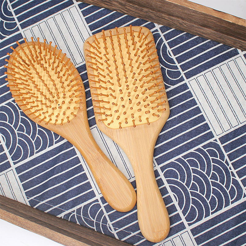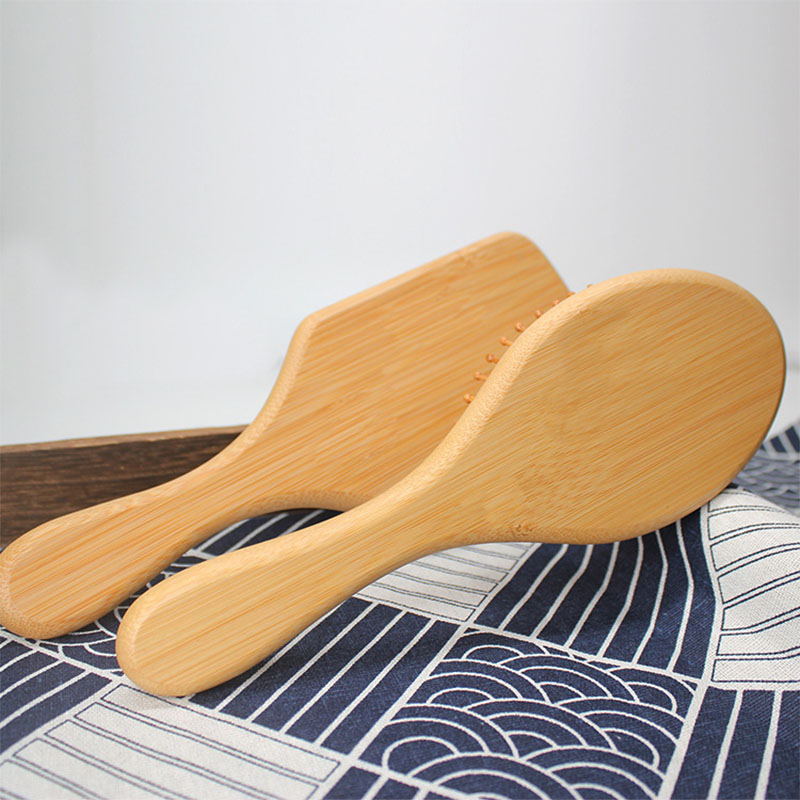 The H04 and H05 are our medium-sized bamboo paddle hair brushes, available in two different brush head shapes. The H04 features an oval head, while the H05 comes with a square head.