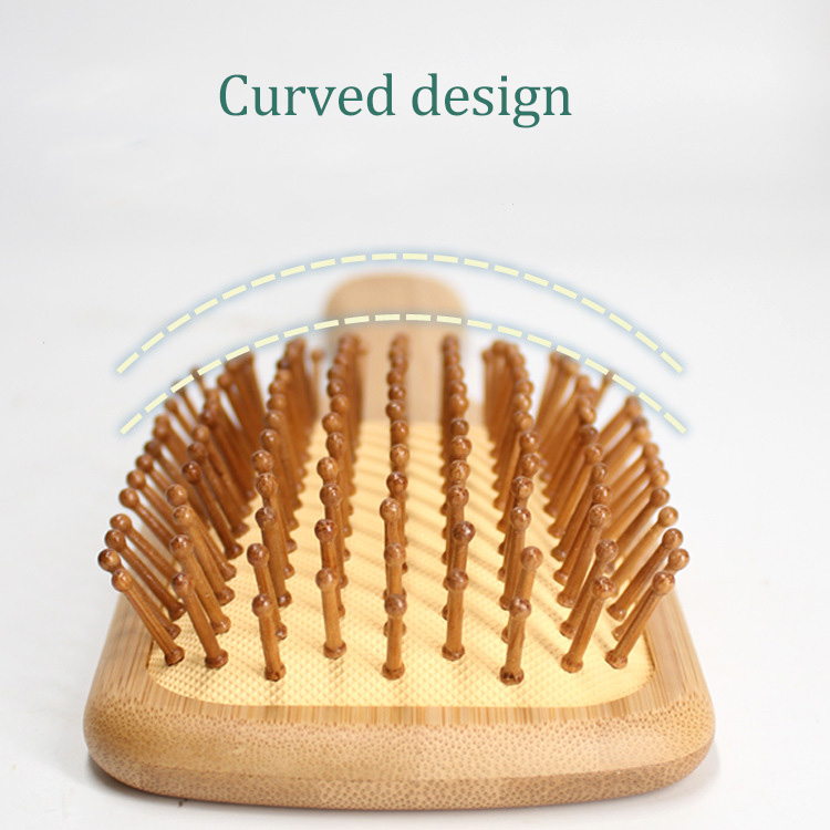 The rounded bamboo bristles are gentle on the scalp and feature a curved brush surface design. The evenly spaced bristles allow for better hair coverage and smooth detangling, conforming to the shape of your head.